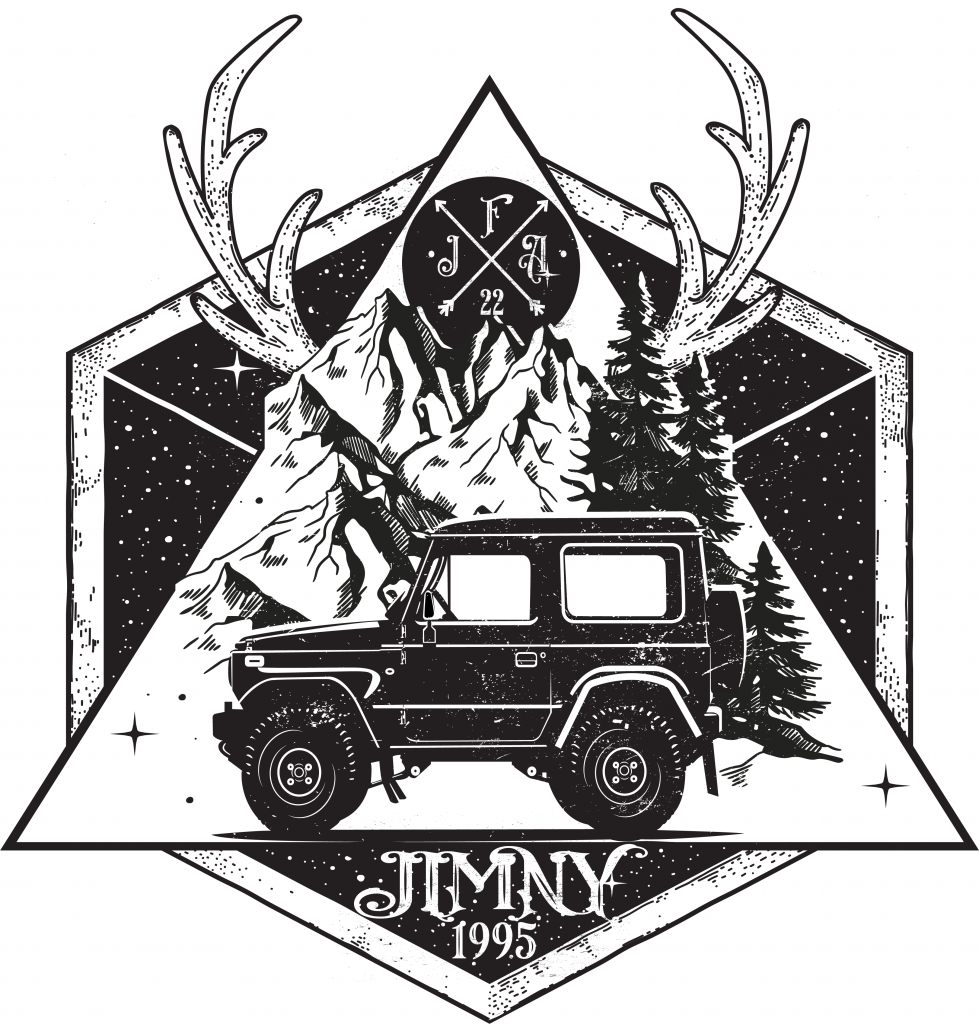 個人プロジェクト – 自分の車(スズキ・ジムニー JA22・1995年式)のためのロゴ/ステッカー制作